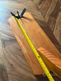 È una morsa per prosciutto in legno con un sistema di fissaggio tradizionale.