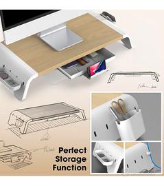 Fenge Supporto Monitor Supporto per Monitor in Legno con Cassetto, Supporto per Telefono e Scatole Di Stoccaggio