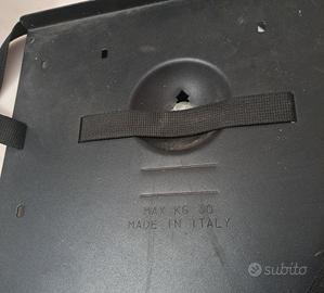 Made in Italy, porta fino a max. 30 kg., con cinghia di ancoraggio al supporto.
