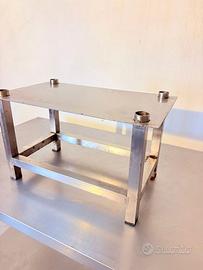 Vendo supporto industriale in acciaio inox, ideale per cucine professionali, laboratori o officine. Grazie alla sua struttura rinforzata, può sostenere pesi importanti o essere utilizzato come base per attrezzature da banco.