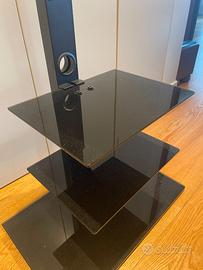 BONTEC Supporto TV da pavimento per TV fino a 40KG,Max VESA 600x400mm, dotato di due ripiani in vetro nero per appoggio lettori/computer, comprese le staffe per il fissaggio del televisore