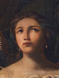 Dipinto ad olio su tela raffigurante la celebre scena biblica di Susanna e i Vecchioni, episodio tratto dal Libro di Daniele. La scena è costruita con un sapiente uso del chiaroscuro, enfatizzando il contrasto tra innocenza e tensione morale. ✔️ Buone condizioni generali: Il dipinto è stato rintelato, non presenta cadute di colore ma piccoli danni alla tela ( vedi foto). Cornice coeva in buono stato generale. 📏 Dimensioni • Senza cornice: 85 x 122 cm • Con cornice coeva: 102 x 138 cm 🏛️ La storia di Susanna e i Vecchioni, narrata nel Libro di Daniele, racconta di una giovane donna ebrea di straordinaria bellezza e virtù, sorpresa mentre si bagna nel giardino della propria casa. Due anziani giudici, incaricati di amministrare la giustizia, si lasciano sopraffare dal desiderio e tentano di costringerla a cedere alle loro avances. Di fronte al rifiuto di Susanna, i due uomini la accusano falsamente di adulterio, reato punibile con la morte. Condotta al giudizio e ormai prossima alla condanna, Susanna mantiene la propria innocenza con fermezza. Sarà il giovane profeta Daniele a intervenire, interrogando separatamente i due accusatori e smascherando le loro contraddizioni. La verità viene così ristabilita: Susanna viene liberata e i due vecchioni, colpevoli di falsa testimonianza, vengono condannati al posto suo. ✅ Spedizione sicura con imballaggio antiurto ✅ Per ulteriori informazioni non esitate a contattarmi Mercatino dell'antiquariato Tiriciclo , Salerno