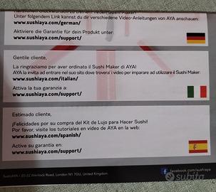 Sushi Maker, per preparare sushi, marca Aya. Nuovo mai usato.