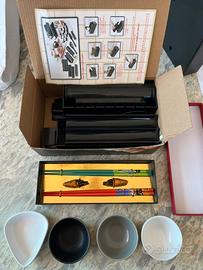 Kit completo per creare il proprio sushi a casa. Con bacchette sushi originali giapponesi. E 2 (DUE) ciotoline a scelta tra : -Ciotolina grigia rotonda; -Ciotolina bianca rotonda; -Ciotolina nera rotonda; -Ciotolina triangolare bianca.