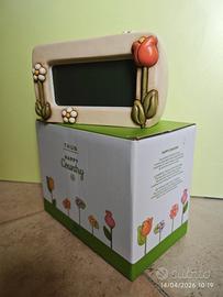 Sveglia digitale Thun con tulipani. Il prodotto è in perfette condizioni, funzionante. Non è mai stato utilizzato. È compreso di scatola originale con tanto di involucro e certificato di garanzia. Non sono presenti difetti o segni di usura. Batterie in omaggio