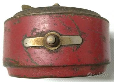 Oggetto da collezione d'epoca con un corpo in metallo verniciato di rosso.
