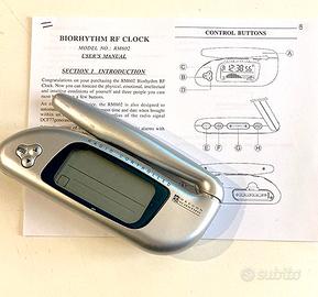 Sveglia digitale radiocontrollata (quindi indica l'ora proveniente dai più precisi orologi atomici del mondo) che offre la possibilità di visualizzare i bioritmi, ovvero gli orari della giornata in cui le principali funzioni fisiologiche, fisiche, emotive e intellettuali sono più o meno favorevoli. Il calcolo é specifico per il proprietario dell'orologio/sveglia in base alla propria data di nascita (ma può essere esteso ad altre 2 persone in preselezione). Oggetto vintage perfettamente funzionante e divertente.