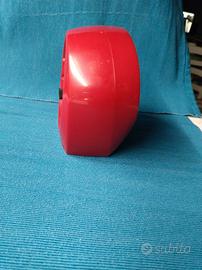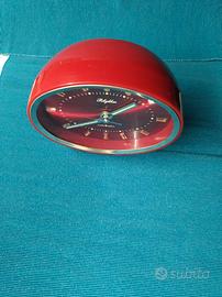 Design iconico mid-century / space age: cassa ovale in rosso metallizzato, vetro bombato e indici applicati con dettagli ambrati. Un vero pezzo di carattere, ideale sia per collezionisti sia come oggetto d’arredo vintage.