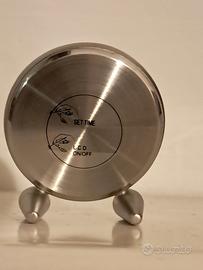 Sveglia digitale con funzione di termometro. Design moderno e compatto.