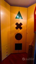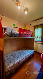 PREZZO TRATTABILE ⚠️ VENDO ANCHE MOBILI SEPARATI⚠️ SVENDO cameretta pagata circa 2500€ al prezzo originario, le condizioni sono ottime con alcuni difetti impercettibili, include per 500€: 1. Struttura letto a castello smontabile 2. - 2 materassi letti singoli e cuscini annessi 3. letto contenitore sotto con ruote bloccabili 4. grande armadio a 4 ante smontabile 5. 8 cassetti gialli sotto l’armadio 6. lampadario dietro il letto: 7. - 2 Cassettoni grandi contenitori, uno già smontato facilmente. 8. - 3 Scalini tutti con spazio contenitore Arredo Blu: 9. Scrivania pari al nuovo con unico piccolo difetto nella zona davanti alla sedia ( da specificare ) 10. Cassetti affianco alla scrivania smontabili ( una maniglia è rotta ma facilemnte sostituibile. 11. Mobile alto con cassetti e libreria molto spazioso smontabile. Disponibile per visita dal vivo e informazioni non esitate a contattarmi 😊