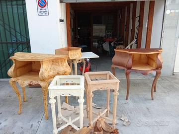 armadio, tavolini, comò,e altri mobili di arte artigianale di legno massello semi finiti e grezzo