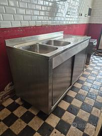 Svendita lavello inox armadiato con doppia vasca e gocciolatoio a destra. Dimensioni 135 cm x 60 cm x 85 cm Ritiro urgente, piano strada, zona Monteverde Vecchio/Roma