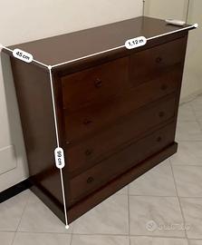 🧺 Cassettiera in legno massiccio con 5 ampi cassetti (112x45x99 cm).