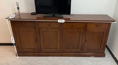 🗄️ Credenza in legno massiccio 4 ante e 4 cassetti (213x45x93 cm).