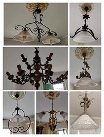 -tanti lampadari vintage in ferro battuto a singola lampada 20€, uno doppia lampada 70€ e uno a 12 lampade 100€