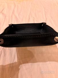 Svuotatasche pratico contenitire per chiavi, monete ed piccoli oggetti realizzato in vera pelle di vitello di alta qualita’, artigianato fiorentino, colore nero. Bottoni automatici agli angoli. Misure 15x15