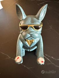Svuotatsche e salvadanio bulldog francese color azzurro/blu e oro. Nuovo mai usato.