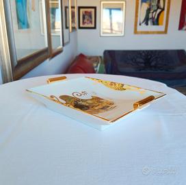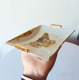 Il decoro centrale e i bordi riprendono il celebre capolavoro di Gustav Klimt "Il Bacio", impreziosito da dettagli dorati
