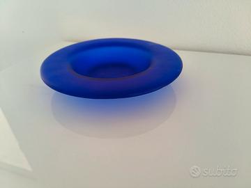 bellissimo svuotatasche o posa cenere in vetro blu intenso. Diametro 20 cm, altezza 3 cm