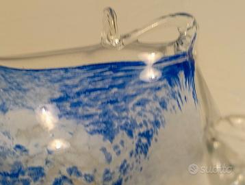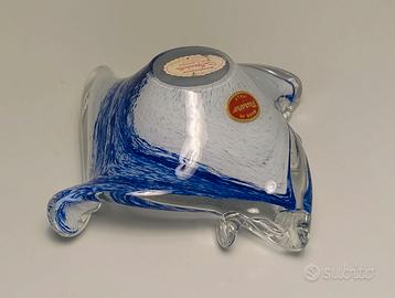 Soprammobile svuotatasche, portacaramelle o centrotavola in cristallo lavorato a mano, vetro di Murano, made in Italy anni '70. Notate la trasparenza del vetro in cristallo chiarissimo. Misure circa cm. 12x12x7H.