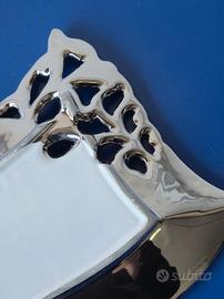 Come da titolo vendo elegante svuotatasche in ceramica bianca con decorazioni argentate a tema floreale. Marchio Verdici Design. Ottime condizioni. Misure: 20x30cm.
