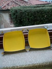 Vendo, anche separatamente due svuotatasche o portaoggetti nuovi in vera pelle colorata, uno giallo/azzurro e uno giallo/nero. Molto curati nei particolari, sono appuntati agli angoli con delle borchiette e sono molto simpatici. Misurano 20x20 cm. Euro 10,00 cadauno. Ideali come regalo