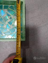 Bellissimo vassoio il legno realizzato a mano con mosaico scintillante. Si può usare come vassoio x dolci, caffè e anche come elegante svuotatasche in tutti i tipi di arredamento. Le misure sono in foto.