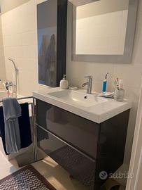 Mobile lavabo doppio cassetto + colonna pensile + specchio in grigio lucido → € 100