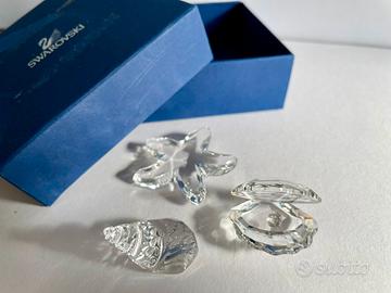 Un set Swarovski composto da Ostrica, Stella marina, Conchiglia. La scatola è originale ma un pochino sciupata. Vintage, risale ai primi anni 90 e non è mai stato esposto. Non presenta graffi né segni di usura. Dimensioni: Ostrica 3 x 2,8. Stella marina dismetro 4,2. Conchiglia 3,5 x 2