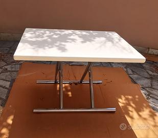 Tavolo con struttura in metallo cromato progettato da Carlo Bartoli negli anni 70. Tavolo da pranzo che si dispone su tre altezze. Ottime condizioni. Piano laccato bianco con piccoli segni.. Dimensioni del piano 120x95 cm