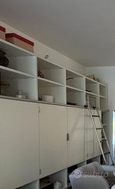 Libreria T70, dimensione 340cm lunghezza, altezza 440cm, profondità 60cm, bianca.