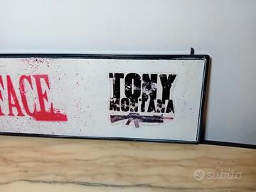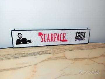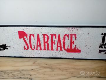 Tabella del film Scarface creata artigianalmente con la tecnica della decalcomania e della vernice spray, ottimo complemento d'arredo per amanti del famosissimo film.