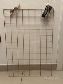 Vendo struttura in metallo effetto oro rosa formato 45x60 cm, ideale come tableau mariage o pannello espositivo per eventi. * Dimensioni: 45 x 60 cm * Materiale: metallo a griglia * Colore: oro rosa * Condizioni: ottime * Leggera e facile da trasportare Perfetta per: * matrimoni (tableau, lista tavoli) * eventi e feste * esposizione foto, biglietti o segnaposto Completa di spago, ganci e mollette, personalizzabile con nastri o decorazioni floreali (come in foto).