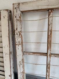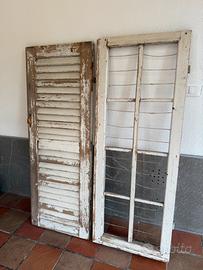 Finestra e persiana decorative in legno dipinte bianca , vintage / shabby . Utilizzate come tableau mariage quindi già predisposte con spaghi per appendere i segnatavoli .