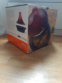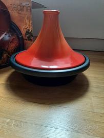 Tajine Le Creuset in ghisa, mai utilizzata, completa anche di scatola originale ed etichette. Sistema di cottura estremamente versatile. Adatto per gas induzione forno ecc. Lavabile in lavastoviglie. Diametro cm.27 nella parte più larga