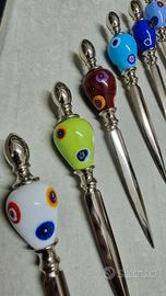 Taglia carte in vetro di murano con murrine. Disponibili 20 PZ in vari colori. Il prezzo indicato si riferisce al singolo pezzo.