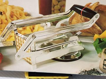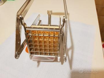 Uutensile da cucina molto robusto, in pesante acciaio inox di qualità, dotato di una ventosa d'appoggio con tenuta ottima. Di facile pulizia, le lame in acciaio affilate, consentono di tagliare con rapidità ed con estrema precisione verdure e patate in 36 bastoncini 10x10 mm. Nuovo, perfetto. Solo ritiro sul posto, prezzo non trattabile.