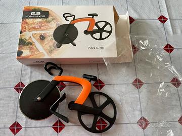 Taglia pizza a forma di bicicletta nuovo, mai usato. Lama ruota anteriore acciaio inox. Diametro ruota 7,5 cm. Marca G.a homefavor