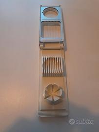 Taglia affetta Uova Sode fette e spicchi .Marca: Leifheit - Germany.Utensile da cucina per taglio di vari alimenti teneri (Es. Uova Sode, Fragole,trancio banana, Kiwi ecc.) Realizza fettine o spicchi con precisione. Taglio manuale grazie al filo di acciaio inox e formatori sagomati.Utilissimo in cucina per le decorazioni di antipasteria e dolci.Materiale: Plastica e acciaio inox.Colore Beige.Dimensioni: 21x8x4 cm. Nuovo, mai utilizzato e sempre tra le stoviglie, come da foto pubblicate.