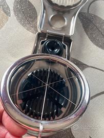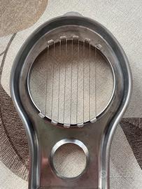 affetta le uova sode in due modi, a spicchi e a fettine sottili, in più ha la punta per forare l’uovo prima di bollirlo, vedi ultima foto. Usato 2/3 volte, pari al nuovo. in acciaio inox