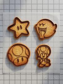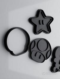Un set super divertente di tagliabiscotti ispirati ai personaggi più iconici di Super Mario! Include: • Bowser (il cattivo per eccellenza) • Toad con il suo cappello a fungo • Super Star (la stella gialla con gli occhi) • Bob-omb (la bomba nera tonda) Perfetti per creare biscotti, dolcetti e decorazioni a tema Super Mario per feste di compleanno, merende dei bambini o semplicemente per chi ama il mondo Nintendo. I dettagli sono nitidi e precisi, ideali sia per la pasta frolla che per la pasta di zucchero. Un regalo originale per tutti i fan di Mario, Luigi e compagnia! #SuperMario #Nintendo #Bowser #Toad #SuperStar #BobOmb #tagliabiscotti #cookiecutters #biscottitematici #festeperbambini #kawaii #videogiochi #mariobros