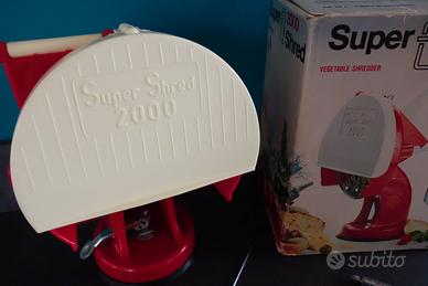 “Super Shred 2000” affetta e grattugia ortaggi e frutta crudi. Grattugia anche formaggio parmigiano o altri formaggi a pasta dura, pane secco, cioccolato, ecc.