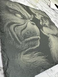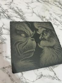 Pezzo unico inciso su ardesia raffigurante il Grinch e Babbo Natale a confronto.