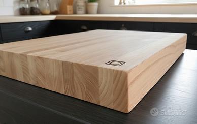 Il design minimale è impreziosito da angoli smussati e da un raffinato logo inciso a fuoco. Perfetto come solida base in cucina o come elegante vassoio da portata, unisce la rusticità della tradizione a un'estetica contemporanea. Un complemento d’arredo funzionale che celebra l'autenticità del legno naturale.