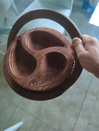 Tagliere etnico in legno intarsiato, pezzo unico, ottimo da aperitivo. Alzando il manico si creano tre spazi in cui inserire le varie pietanze. Bello anche da Decorazione.