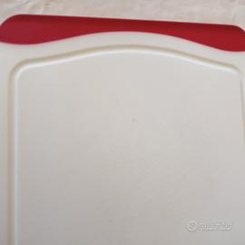 Utilissimo tagliere grande bianco e rosso con scanalature per trattenere il bagnato. Misure: lunghezza cm 42, larghezza cm m 29.