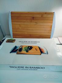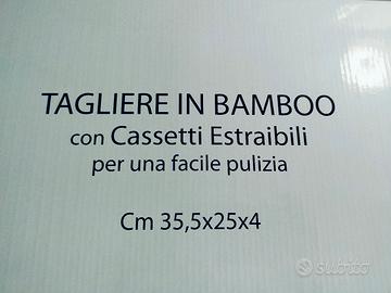 Vendo tagliere in Bamboo con cassetti estraibili. Misure: 35,5 x 25 x 4 Il tagliere è nuovo, mai adoperato e provvisto della sua scatola originale.