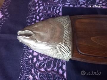 Tagliere grande per pesce in legno marrone. Francia anni 80. Oggetto decorativo di buona manifattura. Lunghezza cm 90.