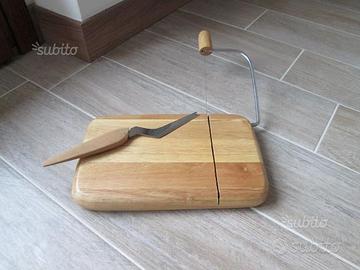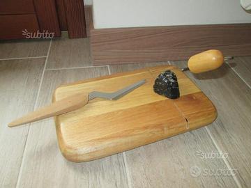 Tagliere in legno per formaggi, con taglierina e coltello. Cm 28 x 17 x 3 H