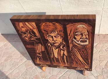 Artigianato italiano con firma. La firma è a garanzia di autenticità e passione per il lavoro manuale. L’intarsio è perfetto come regalo per fan di Star Wars, decorazione per interni, o pezzo da collezione per chi ama l’arte e la cultura pop